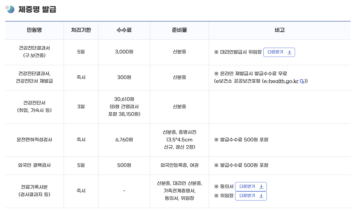 | 소요 기간 | 검사 후 결과 반영 시간 필요 | 당일 발급 가능으로 오해 | “발급 가능일” 메모 |