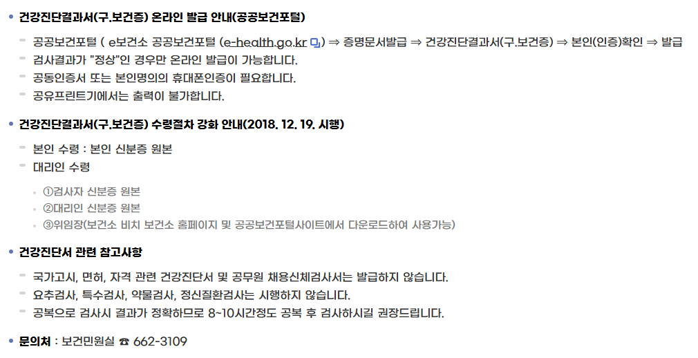 - 민원 접수 창구에서 건강진단(보건증) 발급을 신청합니다