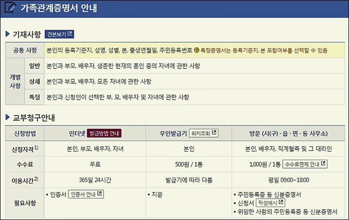 기본 증명서나 혼인관계 증명서도 발급 받을 수 있고