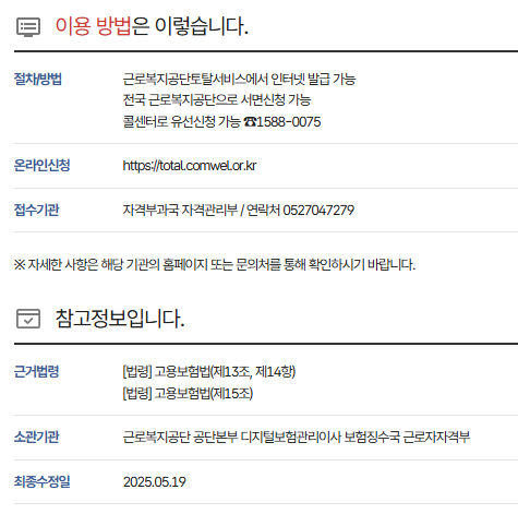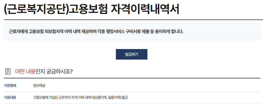 | 발급 대상 | 고용보험 가입한 근로자 |