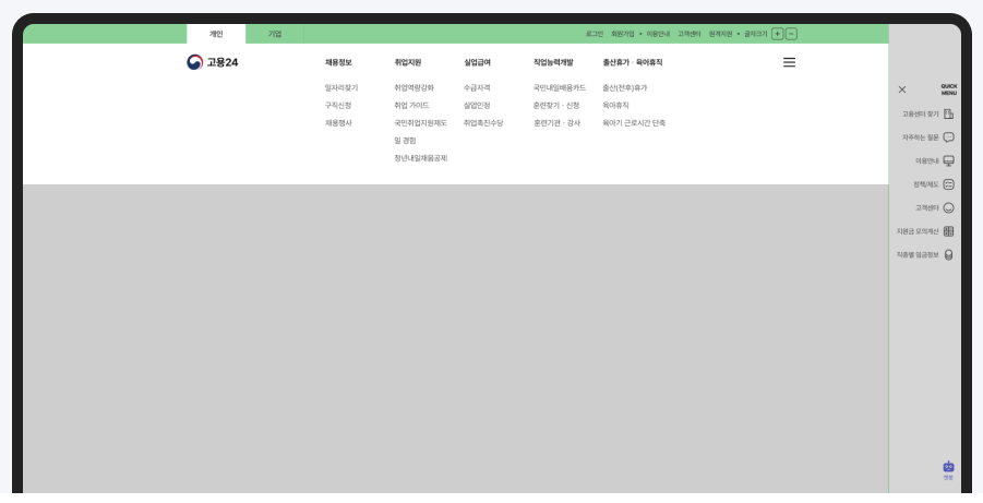 먼저 고용24 홈페이지에 접속합니다. 고용24는 고용노동부의 공식 웹사이트로, 구직 신청을 비롯한 다양한 고용 관련 서비스를 제공합니다.