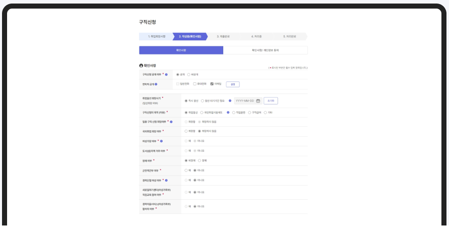 구직신청서 작성 항목: