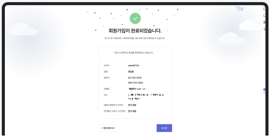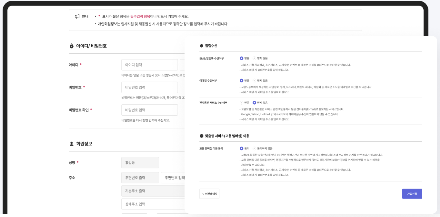 - 회원가입 완료: 마지막으로 정보를 확인하고 회원가입을 완료합니다.