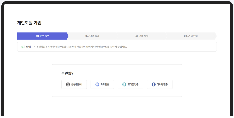 - 본인 인증: 공인인증서 또는 휴대전화 인증을 통해 본인 확인을 진행합니다.