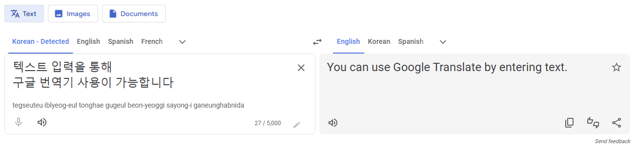 구글 번역기를 통해 최대 10,000자까지 텍스트를 입력하여 실시간 번역이 가능합니다.