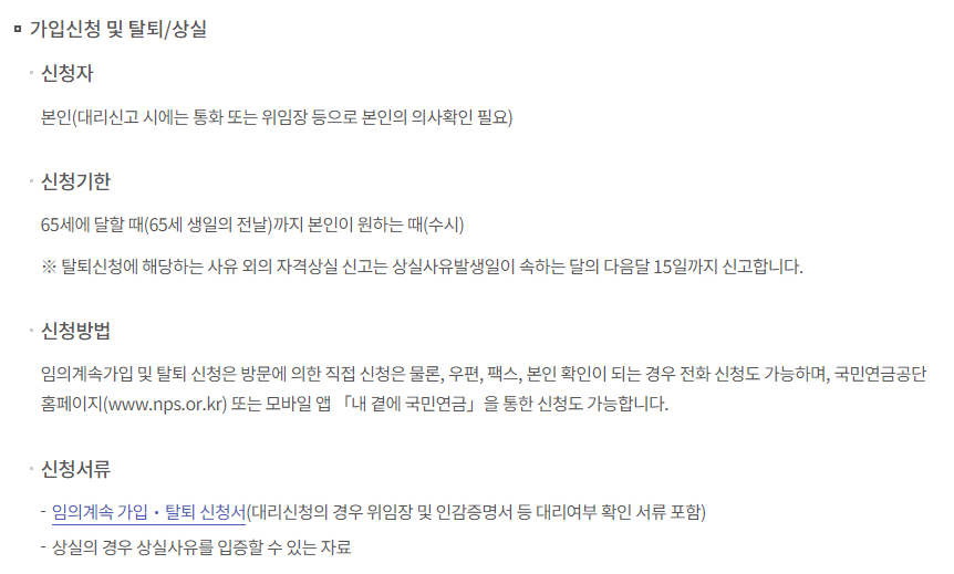 - 대상: 만 60세가 된 이후에도 연금을 계속 납부하고자 하는 사람.