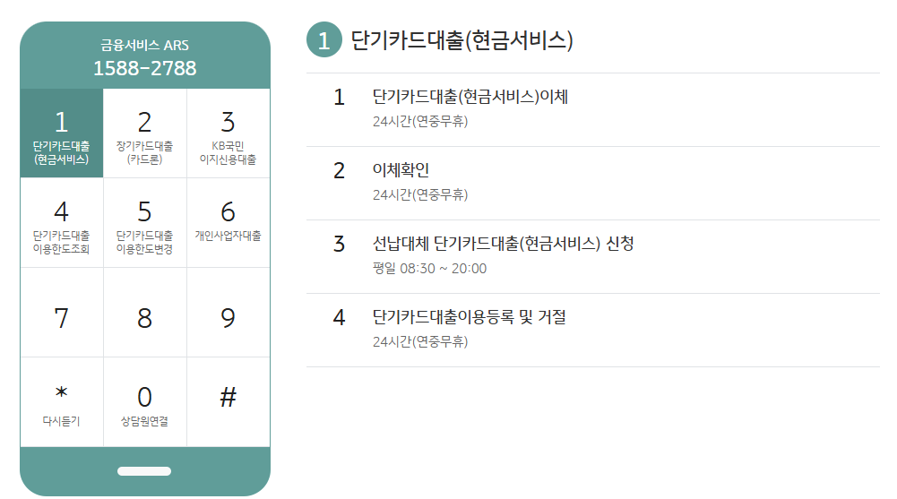 | 금융 상품 상담 | 1588-2788 | 평일 09시~18시 | 카드론, 현금서비스 관련 |