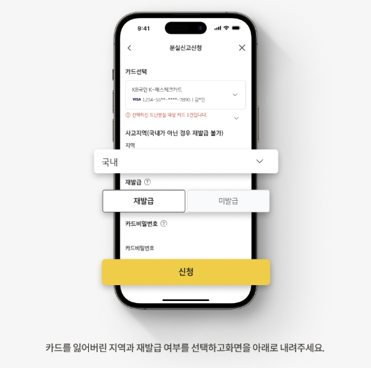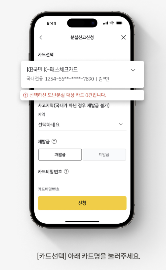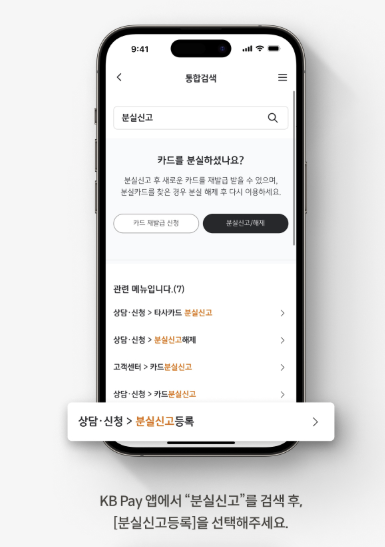 | 여러 카드 함께 분실 | 국민카드 신고 후 타 카드도 점검 | 타사카드 분실신고 메뉴 |
