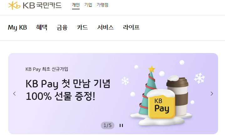 국민카드 홈페이지에서 제공하는 주요 서비스