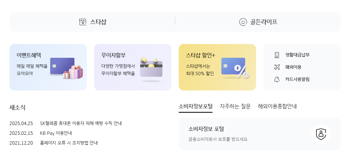 | 공식 사이트 주소 | www.kbcard.com |