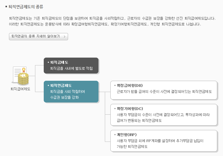 | 퇴직연금 유형 | DB / DC / IRP 구분 |