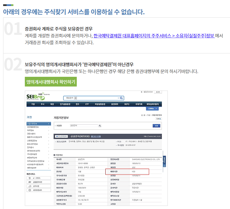 | SEIBro | 미수령 주식, 배당금, 상장폐지 종목 |