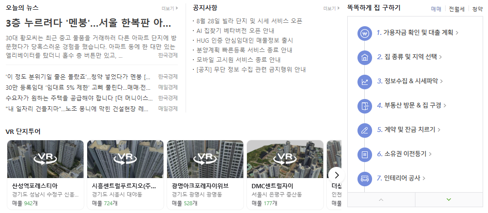 - 계정 로그인 상태 유지: 로그인해 두면 관심 매물과 분양 알림 등 맞춤 서비스를 편리하게 사용할 수 있습니다.