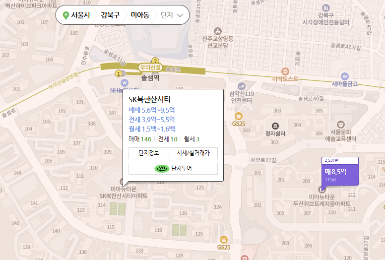| 실거래가 조회 | 최근 거래 내역 및 시세 확인 가능 |