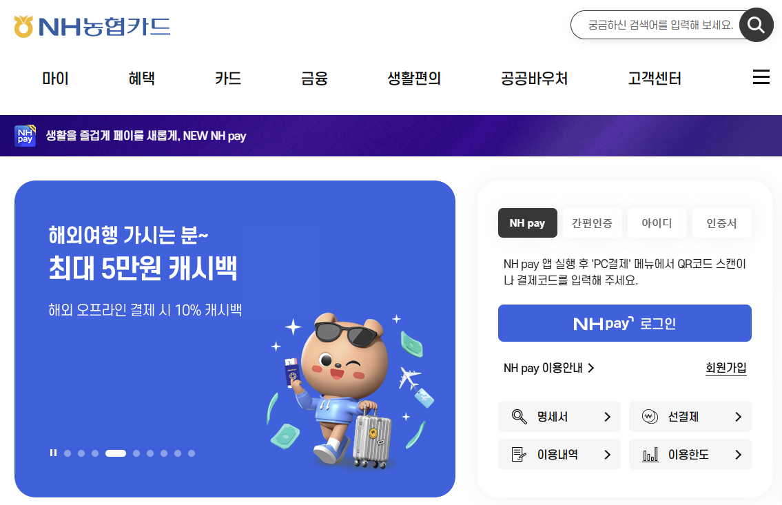 농협BC카드 홈페이지에서는 카드 신청부터 결제 내역 조회, 금융 서비스 이용까지 다양한 기능을 제공하고 있습니다.