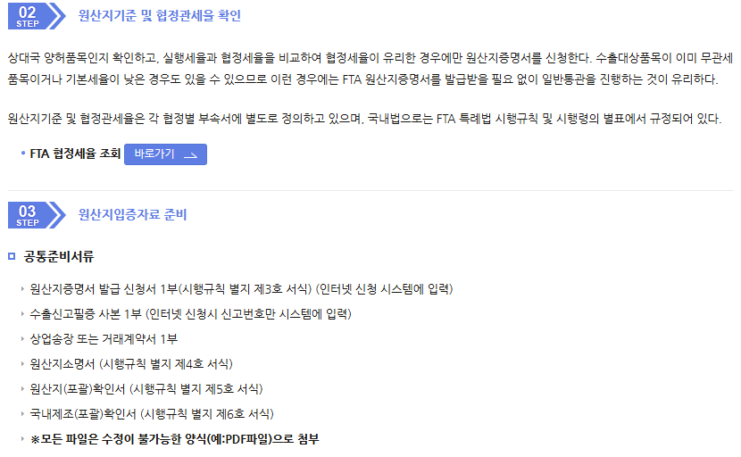 - 원산지 결정 기준에 따른 입증 서류를 업로드하여 신청 과정을 간소화합니다.