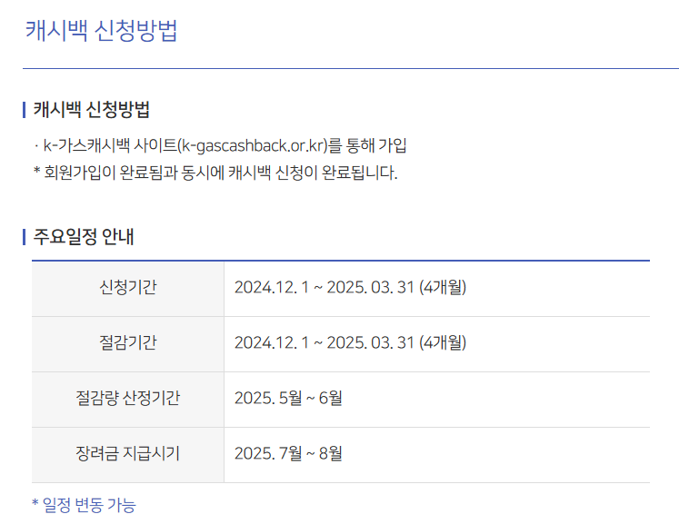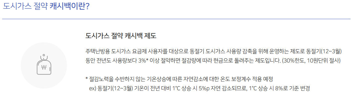 - 전년도 동기간 대비 3% 이상 가스를 절감하면 캐시백을 받을 수 있습니다.