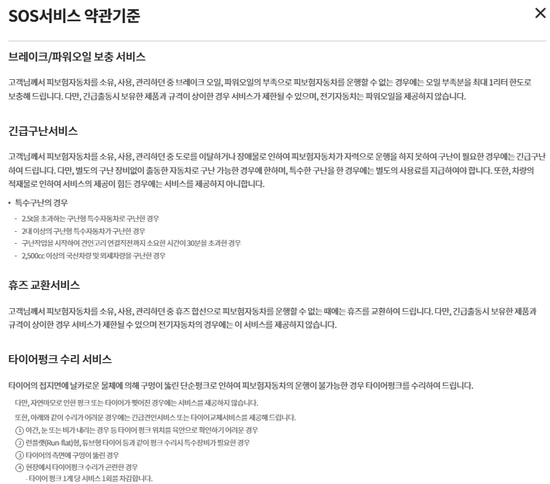 긴급 견인 | 기본 견인 거리 이내 무료, 초과 시 추가 비용 발생 |