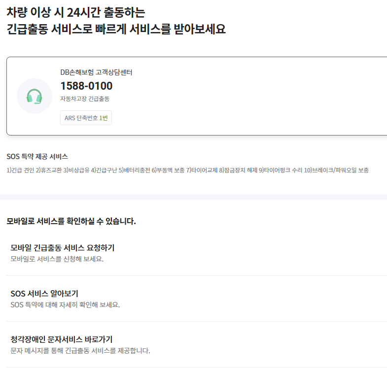 DB다이렉트 자동차보험 긴급출동 서비스를 이용하려면 다음 방법 중 하나를 선택하시면 됩니다.