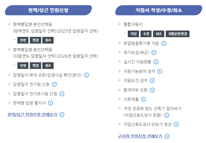 - 입영 관련 민원: 입영일자 연기 신청, 입영 통지서 확인