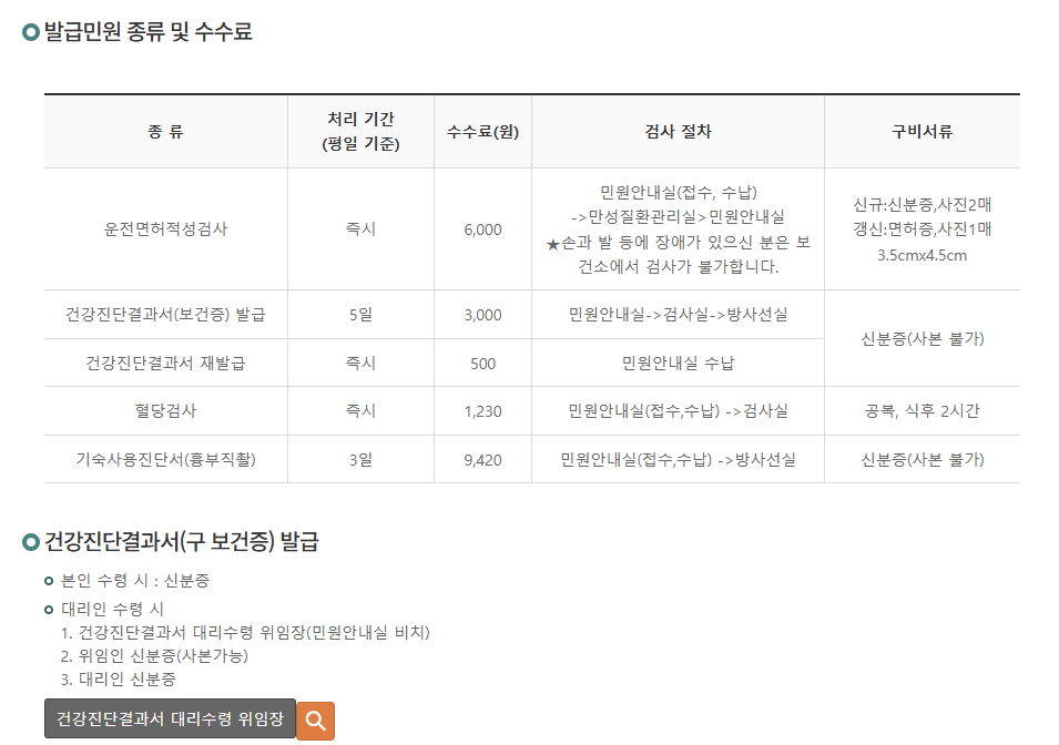 보건소 보건증 발급 병원 찾기
