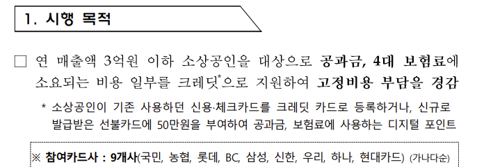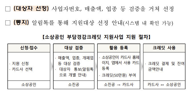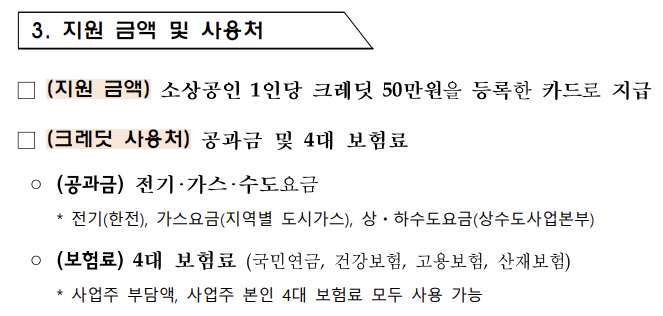 먼저 이 정책의 기본적인 취지와 적용 대상을 정확히 이해하는 것이 중요합니다. ‘부담경감 크레딧’은 연매출 3억 원 이하의 소상공인을 대상으로 공공요금 및 4대 보험료 부담을 완화해주는 바우처 프로그램입니다. 이 바우처는 한 번에 지급되는 것이 아니라, 지정된 본인 명의의 카드로 자동이체되는 요금에서 최대 50만 원 한도 내에서 자동 차감되는 방식입니다.