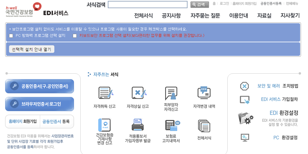 - 국민건강보험 EDI 시스템에 접속합니다.