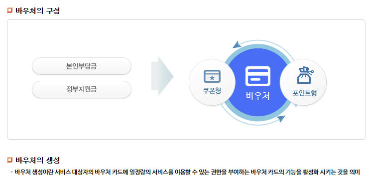 | 바우처 사용 방식 | 국민행복카드 등 지정카드 사용 |