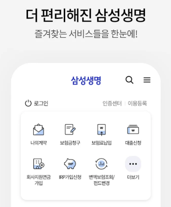 - 구글 플레이스토어나 앱스토어에서 "삼성생명" 앱을 다운로드 후 실행합니다.