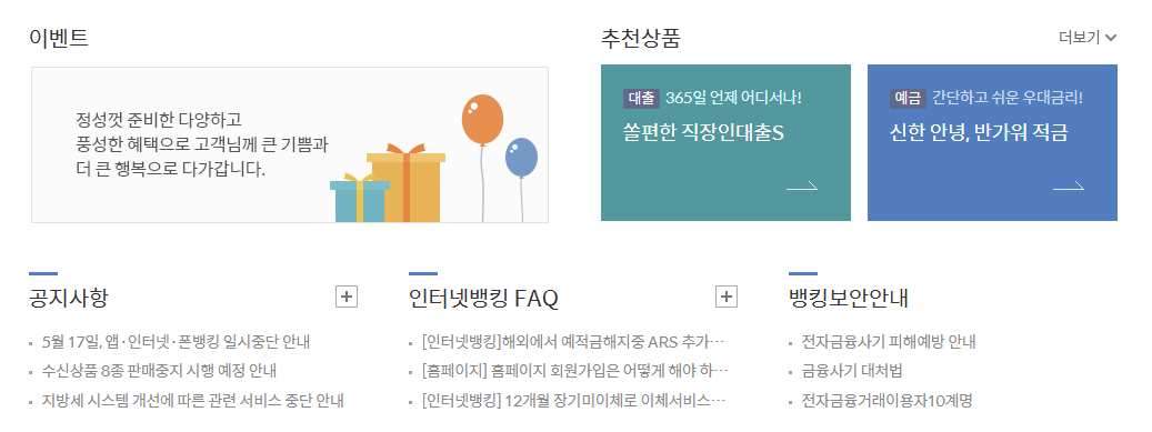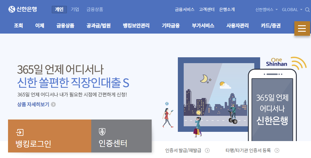 신한은행 개인인터넷뱅킹 홈페이지