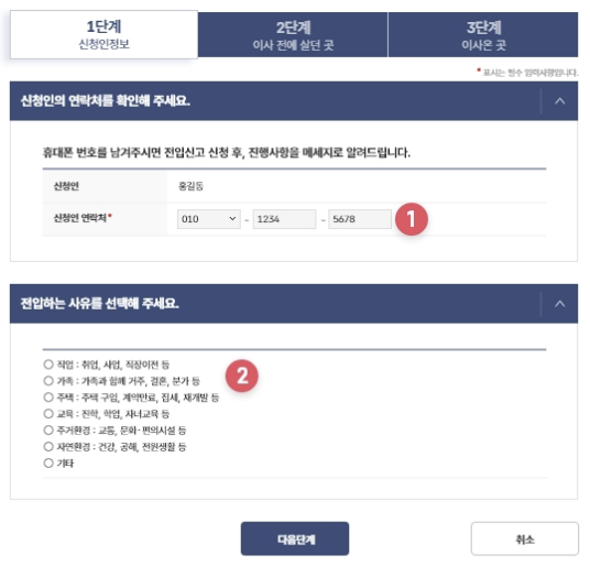 3️⃣ 신청인 정보 확인 및 전입 유형 선택