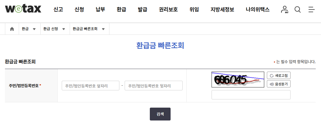- 환급 세목 선택: 환급받을 세목을 선택합니다.