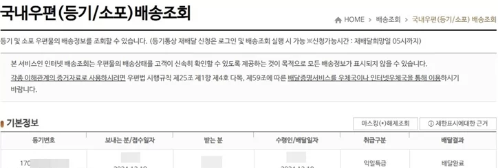인터넷 우체국 등기조회 (www.epost.go.kr)