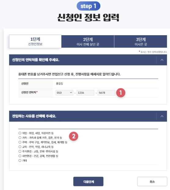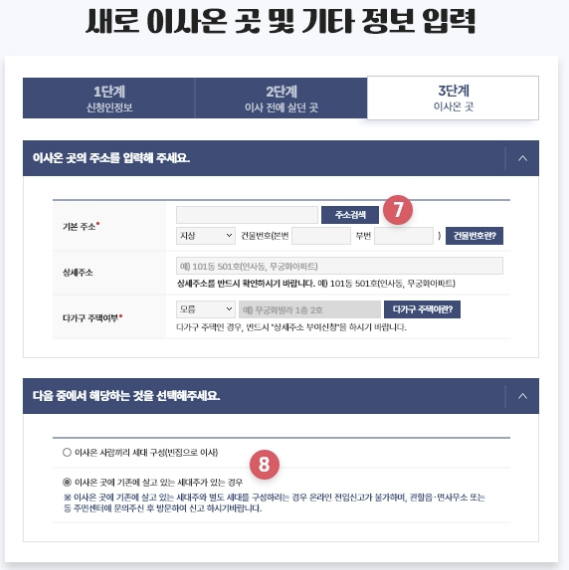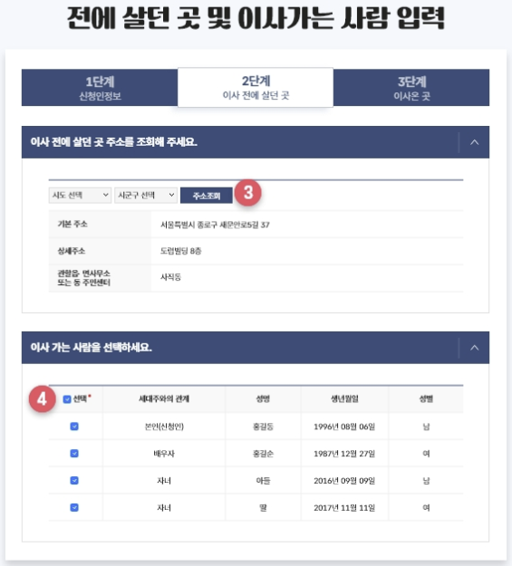 2단계: 신청서 작성 – 주소 및 세대 정보 입력