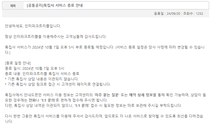 인터파크 티켓 앱에서는 톡집사를 통해 실시간으로 문제를 해결할 수 있는 자동화된 상담 서비스를 제공하였으나, 2024년 10월부로 해당 서비스가 종료 되었습니다.
