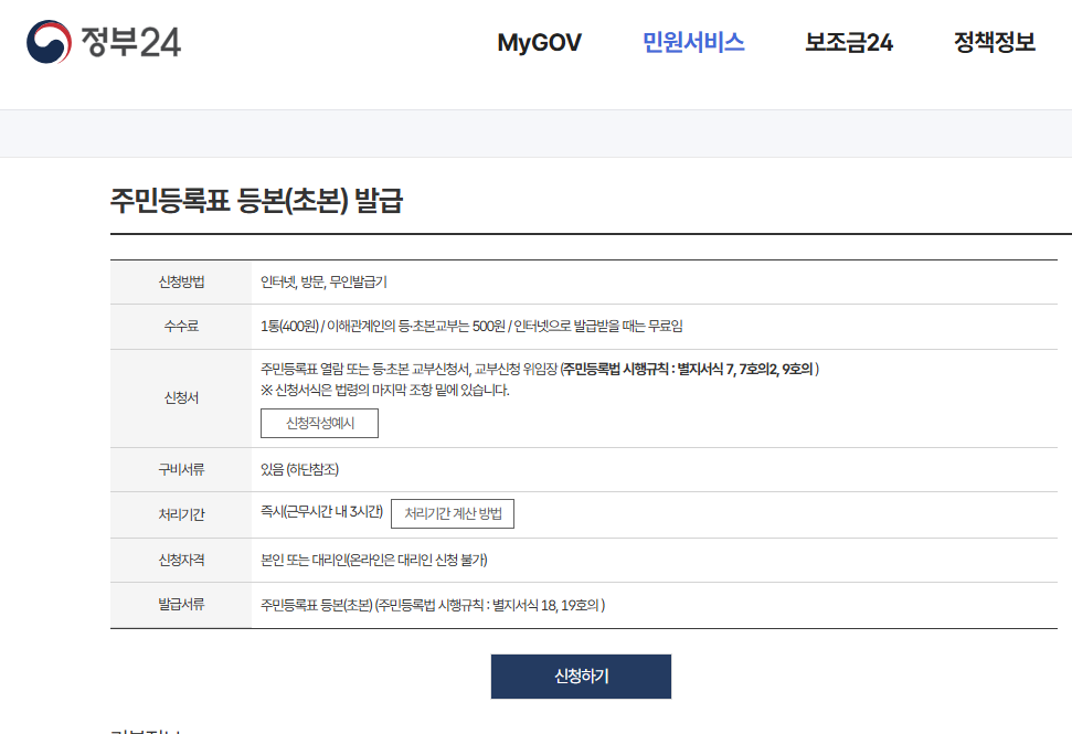 주민등록초본은 주로 정부24 웹사이트를 통해 발급됩니다. 아래는 단계별로 발급 절차를 설명한 내용입니다.