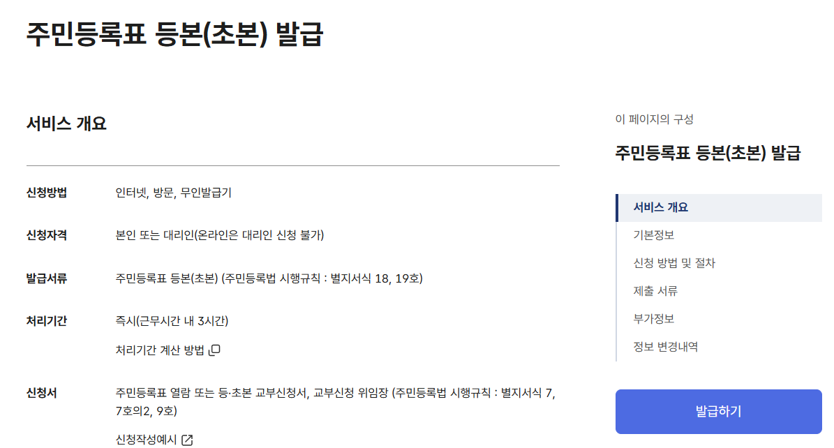 주민등록초본 발급 시 유의사항