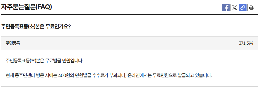 Q1: 주민등록초본 발급은 무료인가요?