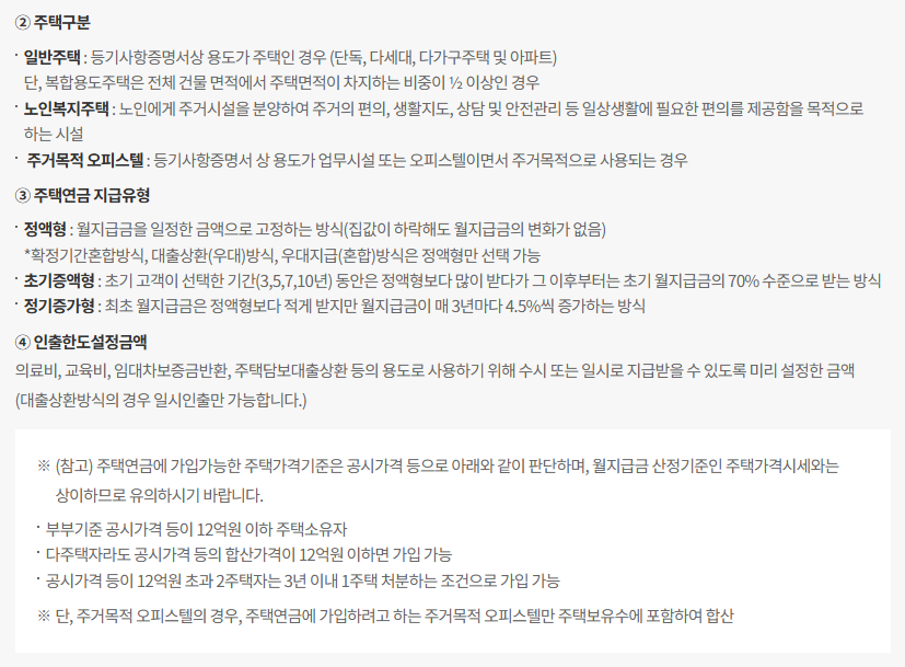 본인 나이만 보는 것이 아니라 연소자 기준이라는 점이 핵심입니다. - 담보주택 종류를 정확히 고릅니다.