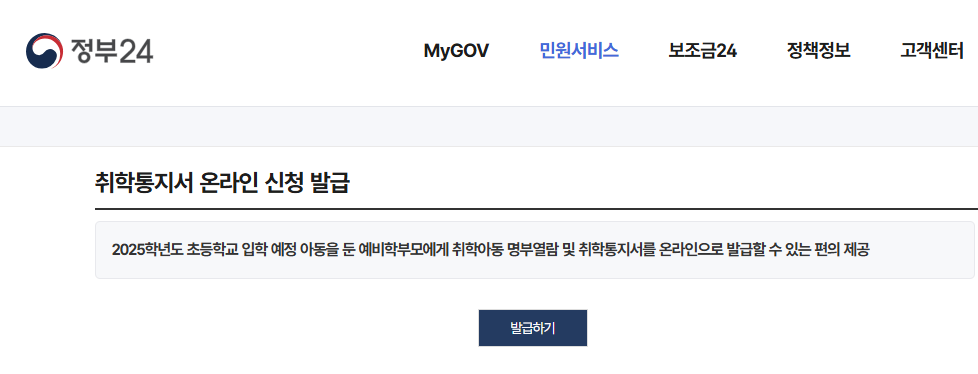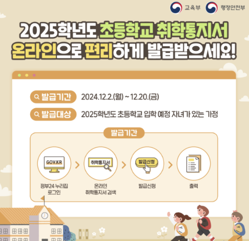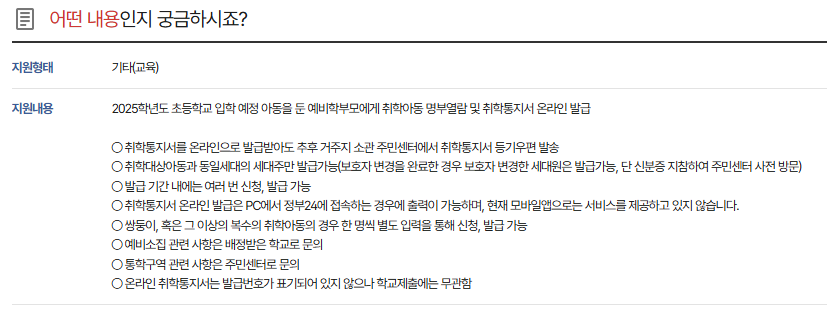 | 발급 대상 | 2025학년도 초등학교 입학 예정 아동의 보호자 (2018년 1월 1일 ~ 2018년 12월 31일 출생) |
