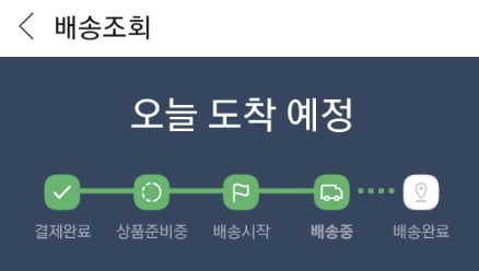 - ‘배송조회’ 또는 ‘배송상태’ 영역에서 현재 단계를 확인합니다.