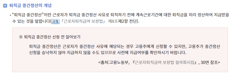 - 퇴직연금 사업자에 요청: 사용자의 승인 후 사업자에 중간정산 지급 요청