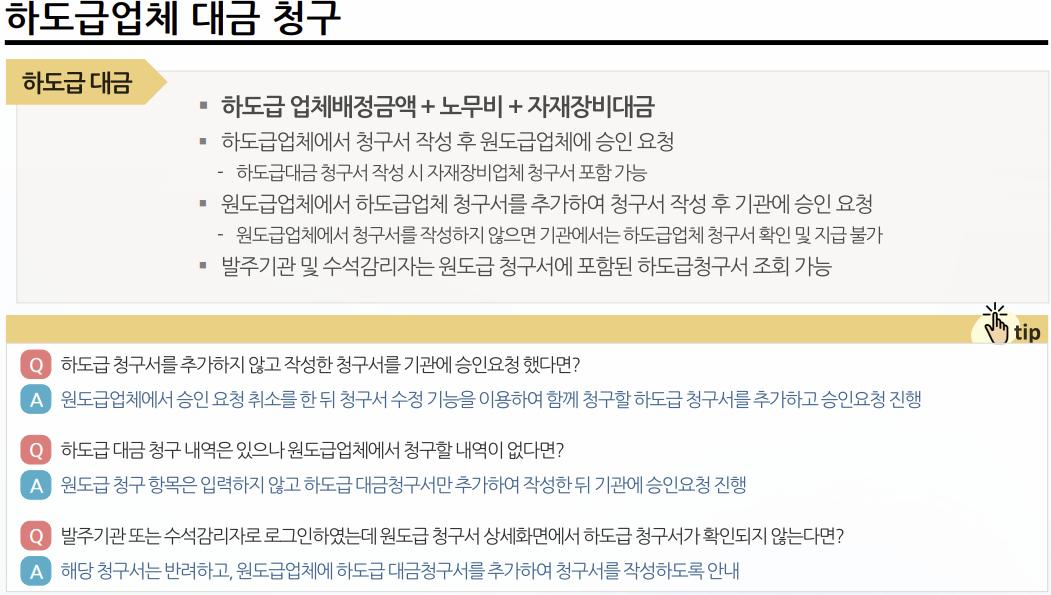 - 원사업자가 청구 내용을 검토하고 승인 여부를 결정합니다.
