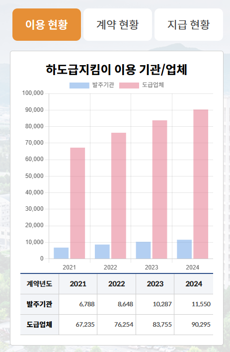 홈페이지에서는 사업 등록, 계약 등록, 대금 지급, 내역 확인 등 다양한 메뉴를 제공하며, 발주기관과 사업자 모두 동일한 시스템에서 관리할 수 있습니다.