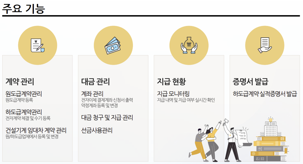 - 하청업체는 공사가 진행된 만큼의 대금을 시스템을 통해 청구합니다.
