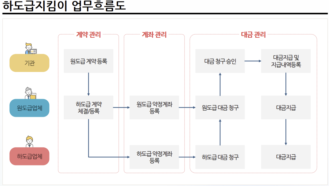 - 원사업자가 하도급업체에 지급할 대금을 시스템 상에서 관리합니다.