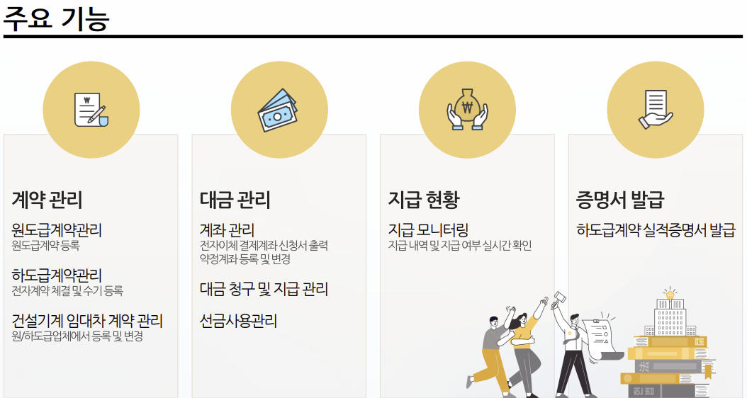 - 근로자 임금 및 자재 대금 자동 이체 기능.