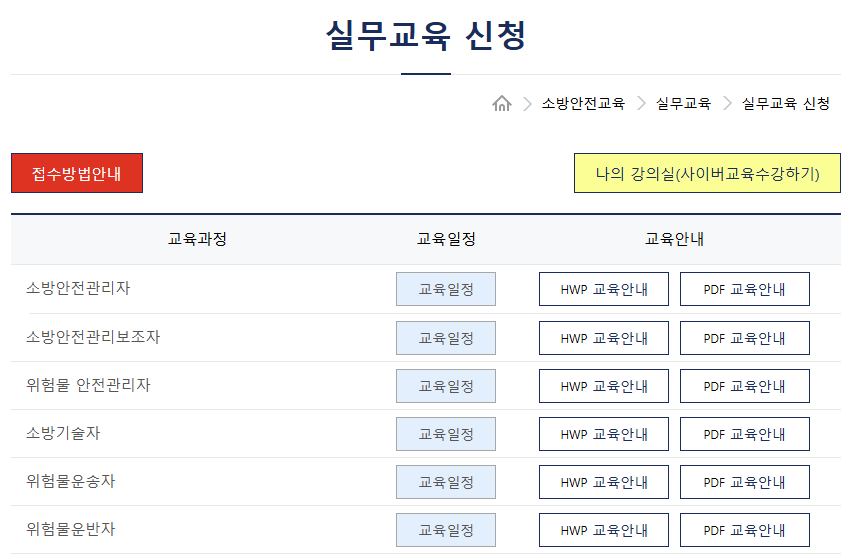- 소방안전관리자 교육: 건물 소방 책임자 대상으로 필수 교육 과정