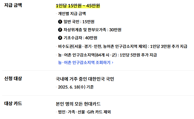 소비쿠폰 제도는 카드사와 연계해 일정 금액을 지원하고, 그 금액을 전국 소상공인 가맹점에서 사용할 수 있도록 설계되어 있습니다. 현대카드는 본인의 앱이나 홈페이지를 통해 쉽게 신청할 수 있도록 플랫폼을 구성해 놓았으며, 일부 대상자에게는 일반 금액보다 더 많은 지원금이 주어지기도 합니다. 하지만 사용 기한이나 지원 대상에 따라 주의해야 할 점이 많으므로, 하나하나 차근히 확인해 보겠습니다.