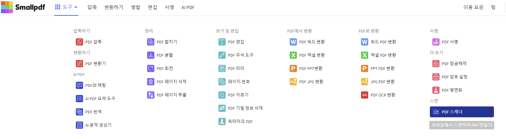 Smallpdf | 간편한 사용성 | 무료 및 유료 |